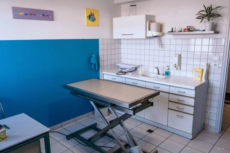 La salle d’imagerie nous permet d’effectuer des échographies et des radiographies en toute sécurité. Ceux sont des examens complémentaires qui nous permettent de poserun diagnostique, en cas de fracture d’une patte par exemple, ou parfois vérifier l’évolution d’une gestation.