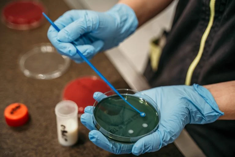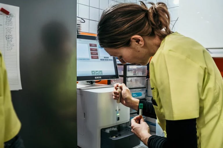 Nous avons créé dans notre structure un vrai laboratoire d’analyses biochimiques nous permettant d’effectuer en temps réel des examens du sang, des dosages hormonaux, des numérations formule pour toutes les espèces. Des examens microbiologiques sont réalisés grâce au microscope et à l’étuve, utilisée pour effectuer des bactériologies sur gélose et des antibiogrammes pour cibler les traitements.